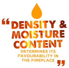 It is the density and moisture content of the wood that determines its favourability for use in the fireplace. Some wood has too much moisture or is too dense and does not burn in a satisfactory manner to make it a worthy fireplace filler.